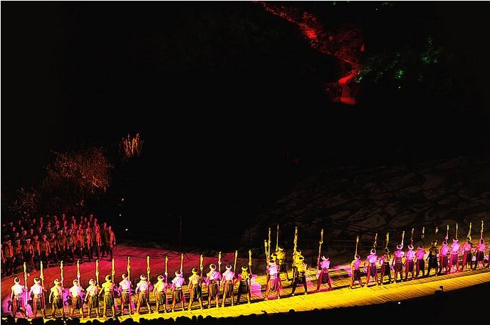 印象武隆:“印象·武隆”实景歌会由印象“铁三角”张艺谋任艺术顾问,王潮歌、樊跃任总导演,100多位特色演员现场真人真情献唱,以濒临消失的“号子”为主要内容,让观众在70分钟的演出中亲身体验自然遗产地壮美的自然景观和巴蜀大地独特的风土人情。