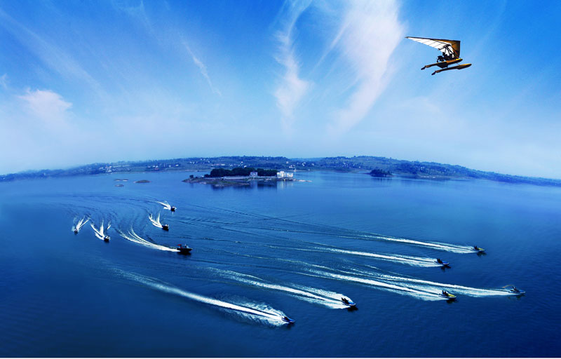 2、水上游乐中心——设有豪华画舫、快艇、水上飞机、摩托艇、鲨鱼船等水上游乐设施。