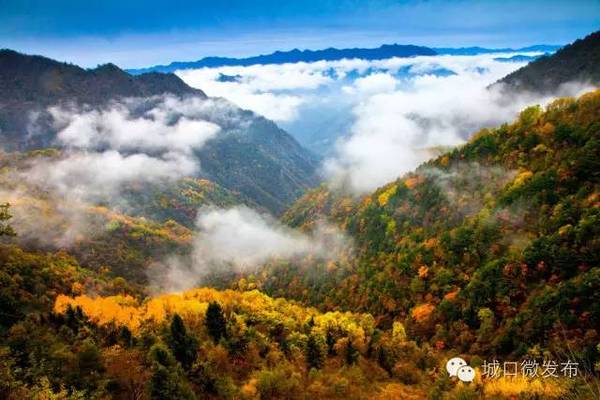 阴雨天的秋日大巴山不仅穿上华丽的彩衣,还如同一位害羞的姑娘蒙上一层薄薄的面纱,显得格外神秘。