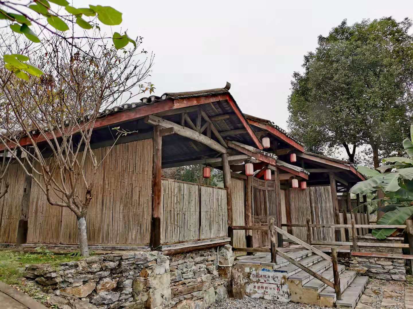 沿可以居大院左侧斜上坡,半坡上有三栋独立的玻璃茅草亭特色民宿房,朝阳而居,房名分别用缘来、无为和结庐来表述了悠然的宿主心境。右斜下坡是一条小径,道路两旁是各种花果树,树下是蔬菜地。过乡愁大道,是生态别院,共五栋并每栋分别独立成院,仅由名字就可以揣测出生态别院的所处环境了,河畔里、听风、揽月、沐雨、泛舟。