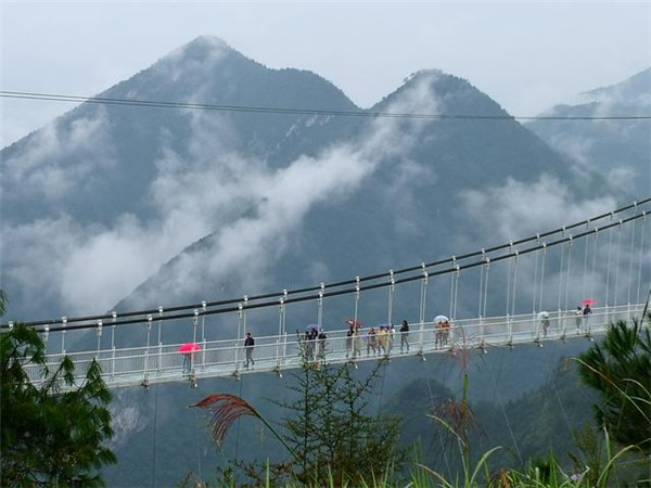 国内玻璃桥众多,大多大同小异,但是这里绝对叫你终身难忘。作为九重天度假区的核心观光景点,这座揽月桥全长5000余米,距谷底垂直高度900余米,宽1.5米。最刺激的莫过于这是是一座5D特效玻璃吊桥,踩在上面不时传出的玻璃碎了的声音,桥面偶尔随风摆动,走在上面真是让人步步惊心。